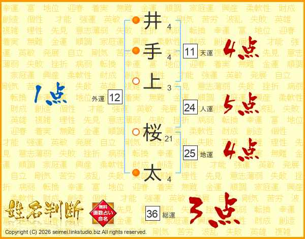 井手上桜太さんの天運は11画の4点!