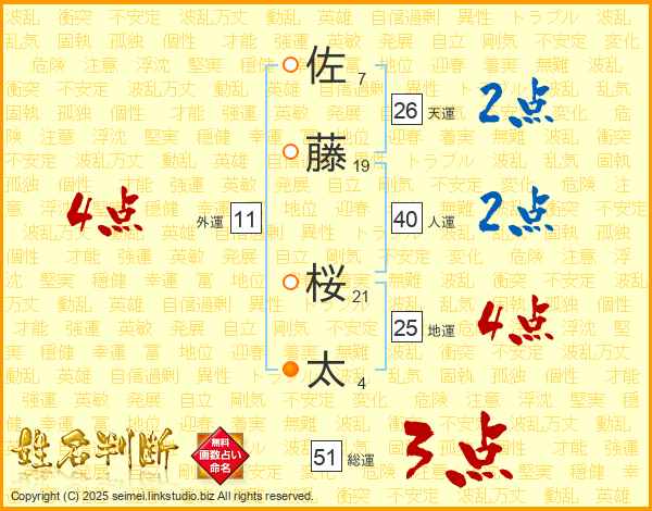 佐藤桜太さんの天運は26画の2点!