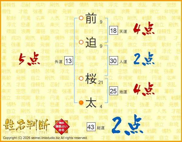 前迫桜太さんの天運は18画の4点!