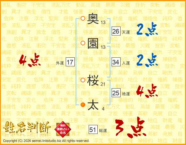 奥園桜太さんの外運は17画の4点!