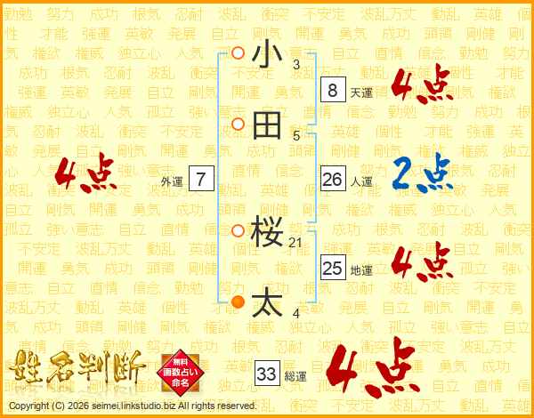 小田桜太さんの総運は33画の4点!