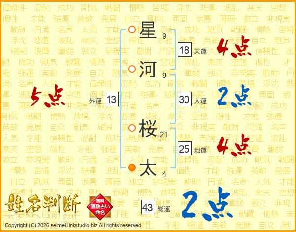 星(9画)河(9画) 桜(21画)太(4画)