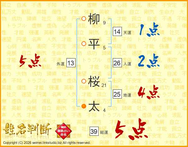 柳平桜太さんの総運は39画の5点!