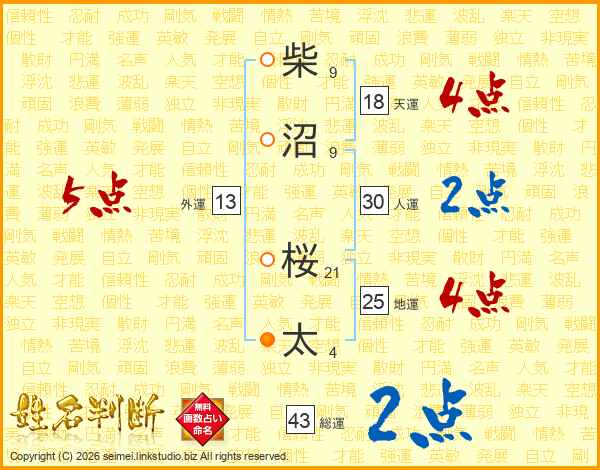 柴沼桜太さんの天運は18画の4点!