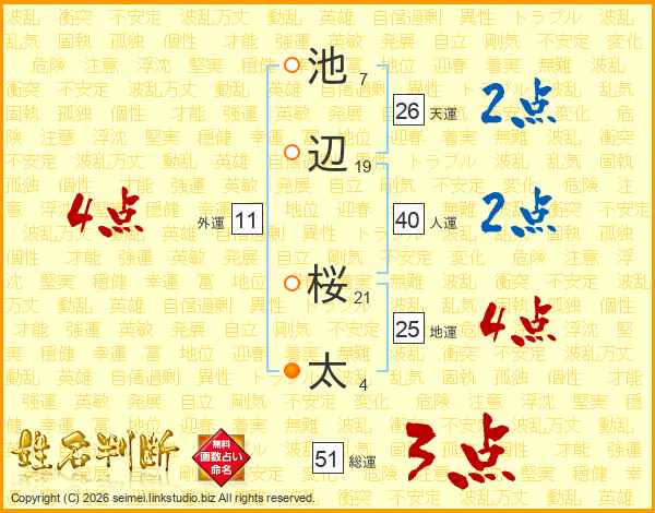 池辺桜太さんの天運は26画の2点!