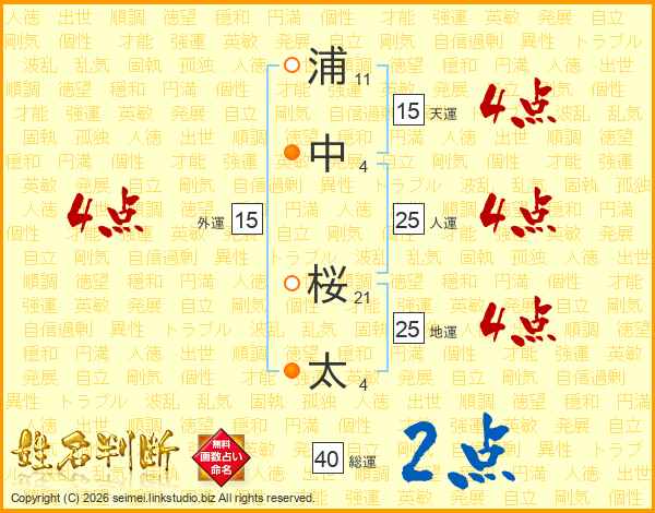浦中桜太さんの地運は25画の4点!