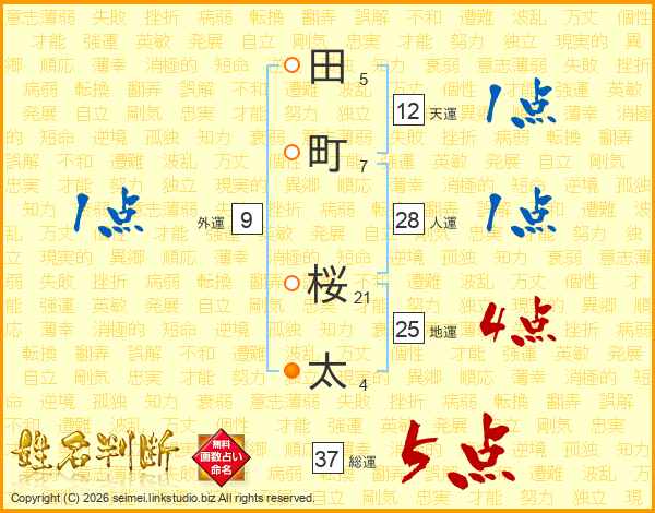 田町桜太さんの総運は37画の5点!