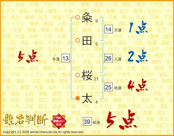 粂田桜太さんの総運は39画の5点!