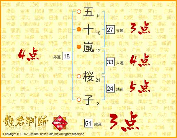 五十嵐桜子さんの総運は51画の3点!