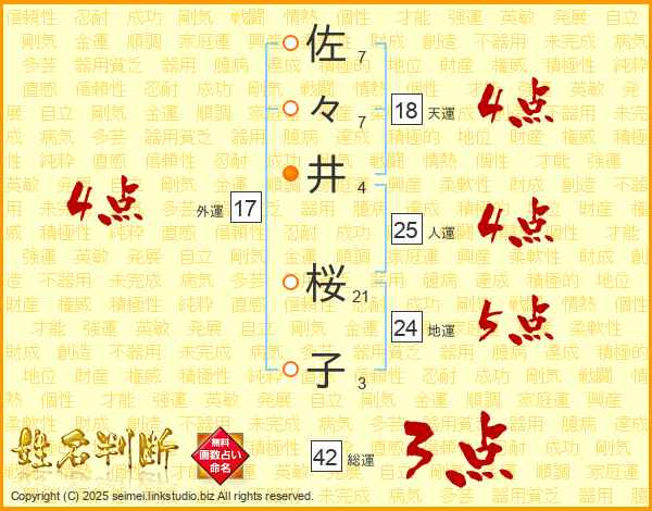 佐(7画)々(7画)井(4画) 桜(21画)子(3画)