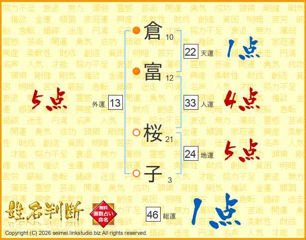 倉富桜子さんの人運は33画の4点!