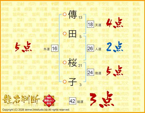 傳田桜子さんの人運は26画の2点!