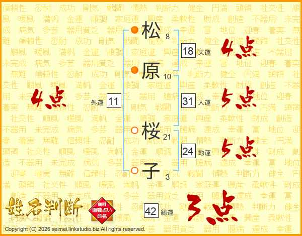 松原桜子さんの天運は18画の4点!