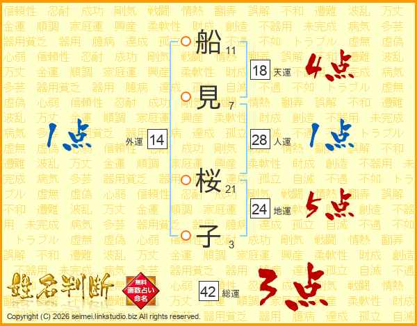 船見桜子さんの外運は14画の1点!
