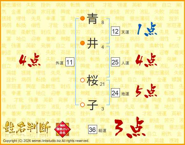 青(8画)井(4画) 桜(21画)子(3画)