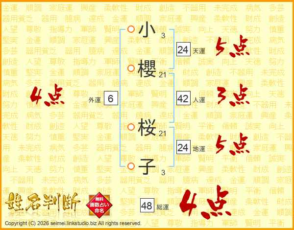 小櫻桜子さんの総運は48画の4点