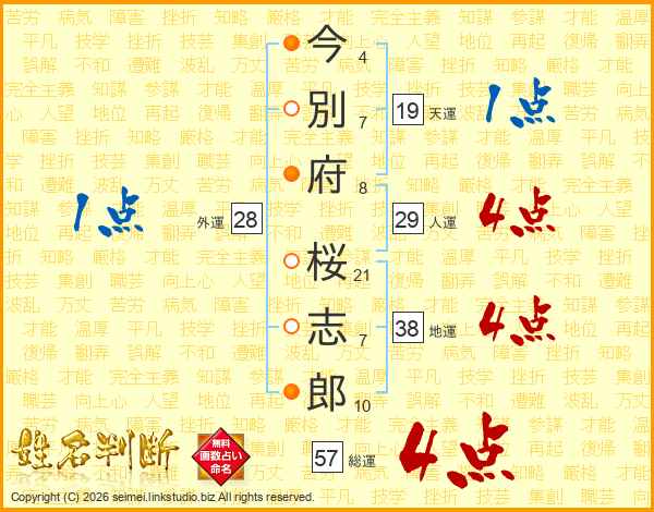 今別府桜志郎さんの総運は57画の4点!