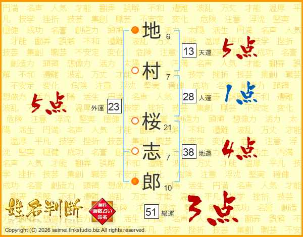 地村桜志郎さんの天運は13画の5点!