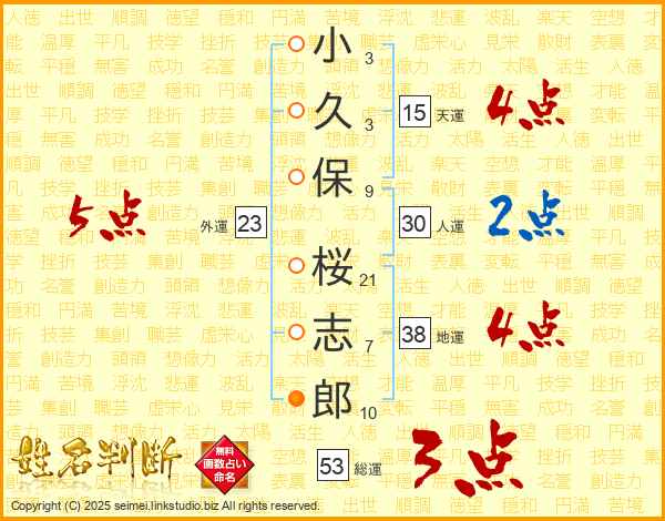 小久保桜志郎さんの総運は53画の3点!