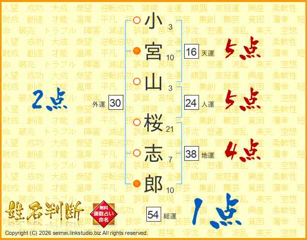 小宮山桜志郎さんの総運は54画の1点!