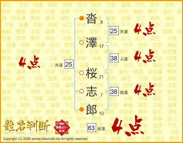 沓澤桜志郎さんの総運は63画の4点!