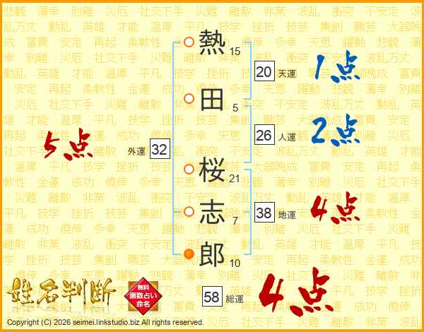 熱田桜志郎さんの総運は58画の4点!