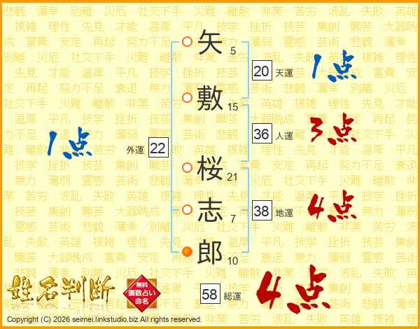 矢敷桜志郎さんの総運は58画の4点!