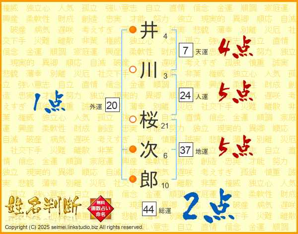 井(4画)川(3画) 桜(21画)次(6画)郎(10画)