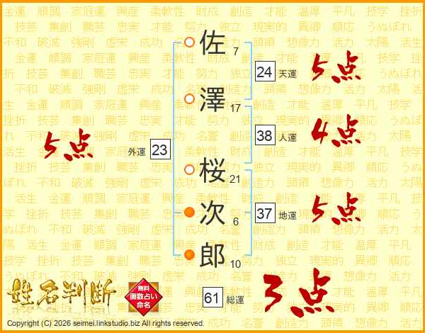 佐澤桜次郎さんの天運は24画の5点!