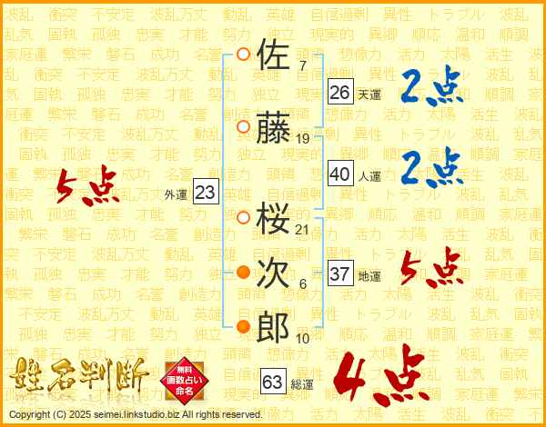 佐藤桜次郎さんの総運は63画の4点!