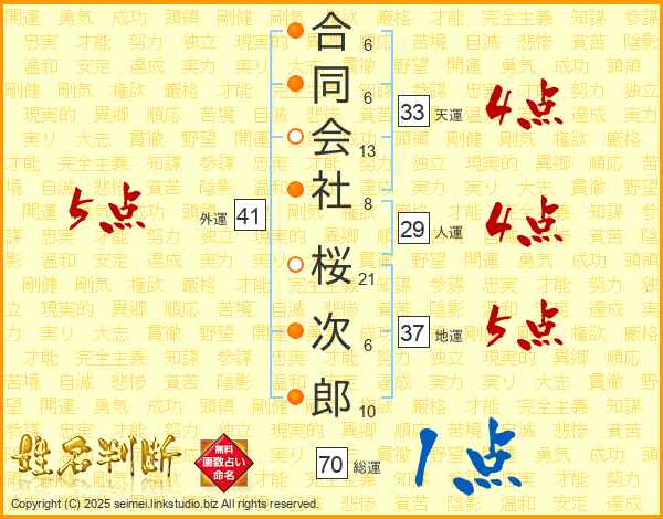 合(6画)同(6画)会(13画)社(8画) 桜(21画)次(6画)郎(10画)