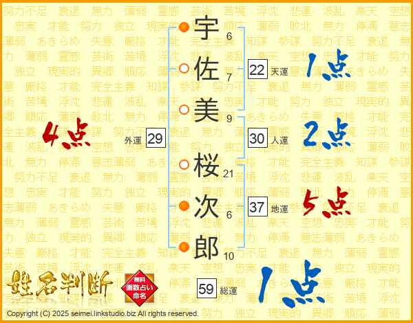 宇佐美桜次郎さんの総運は59画の1点!
