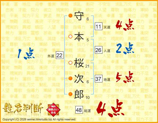 守本桜次郎さんの総運は48画の4点!