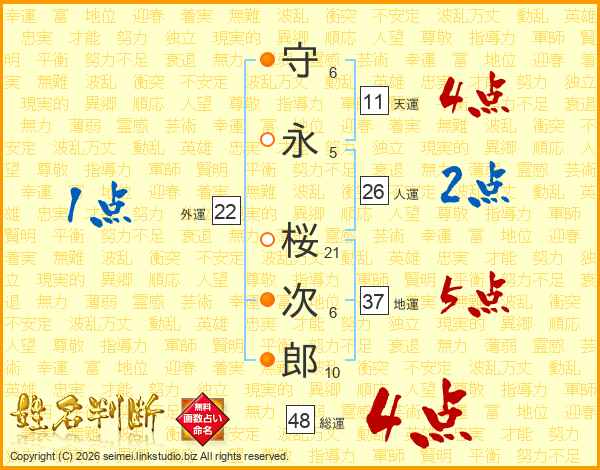 守永桜次郎さんの総運は48画の4点!