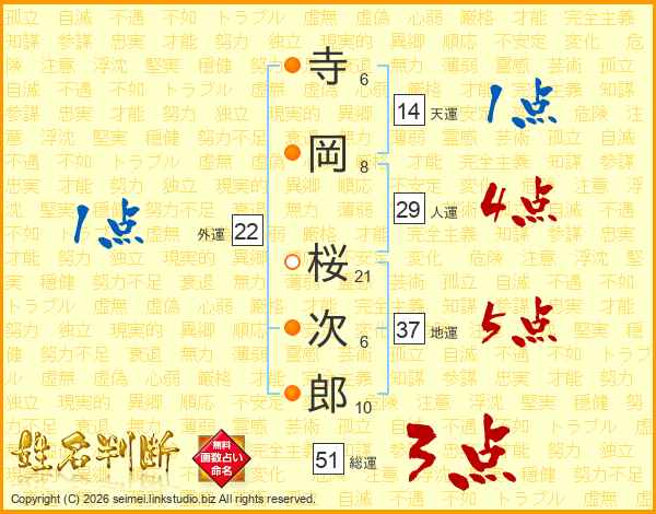 寺岡桜次郎さんの天運は14画の1点!