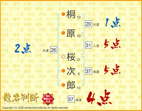 桐(10画)原(10画) 桜(21画)次(6画)郎(10画)