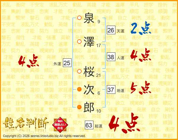 泉澤桜次郎さんの総運は63画の4点!