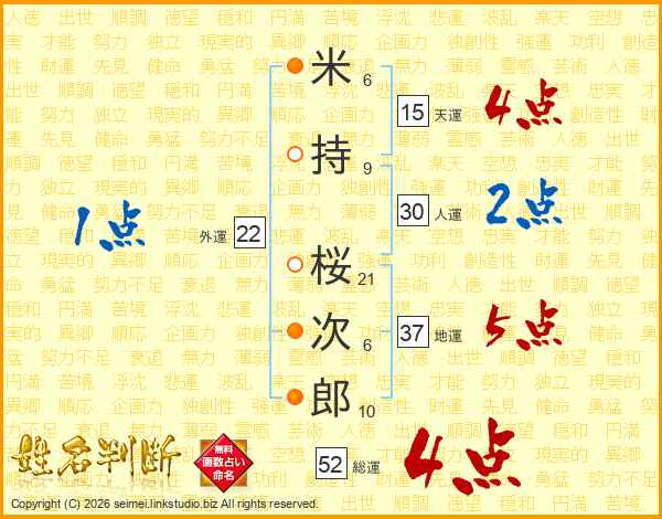 米(6画)持(9画) 桜(21画)次(6画)郎(10画)