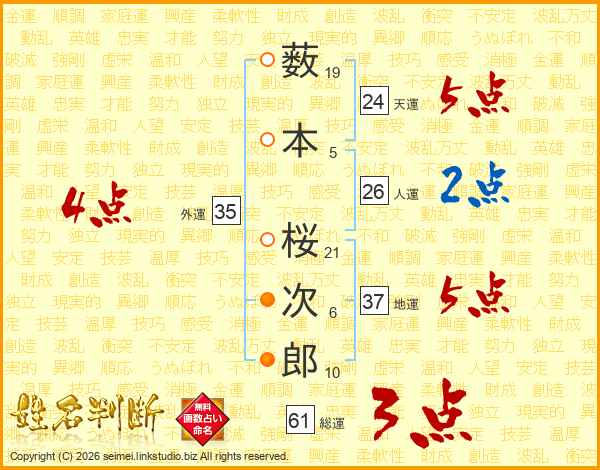 薮本桜次郎さんの総運は61画の3点!