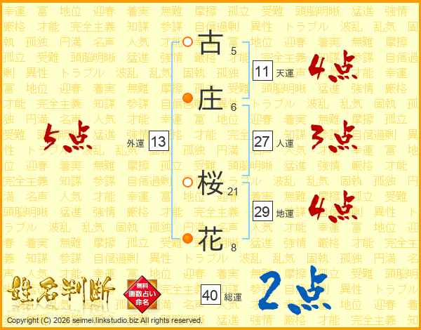 古庄桜花さんの総運は40画の2点!
