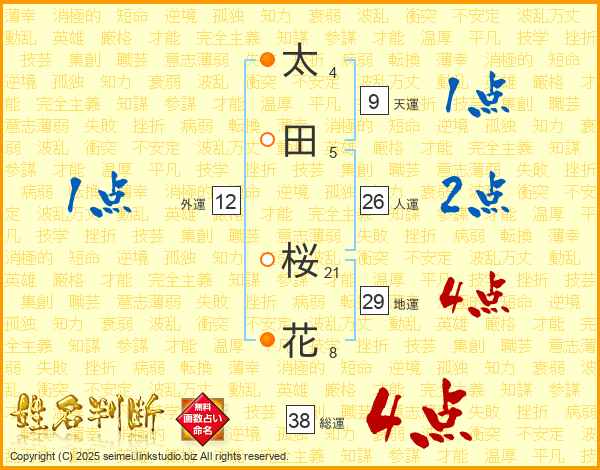 太(4画)田(5画) 桜(21画)花(8画)