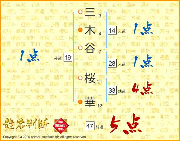 三木谷桜華さんの総運は47画の5点!