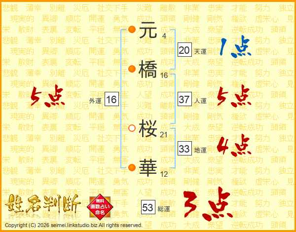 元橋桜華さんの人運は37画の5点!