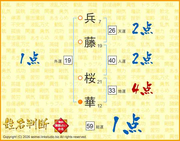 兵藤桜華さんの天運は26画の2点!