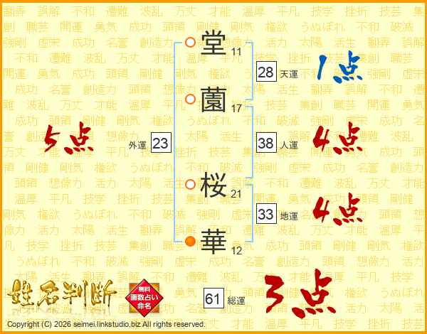 堂(11画)薗(17画) 桜(21画)華(12画)
