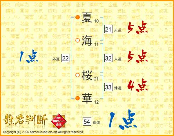 夏海桜華さんの総運は54画の1点!