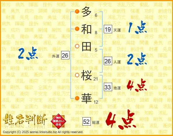 多(6画)和(8画)田(5画) 桜(21画)華(12画)