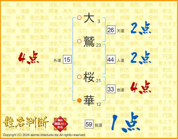 大鷲桜華さんの総運は59画の1点!