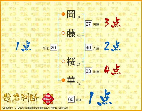 岡藤桜華さんの人運は40画の2点!