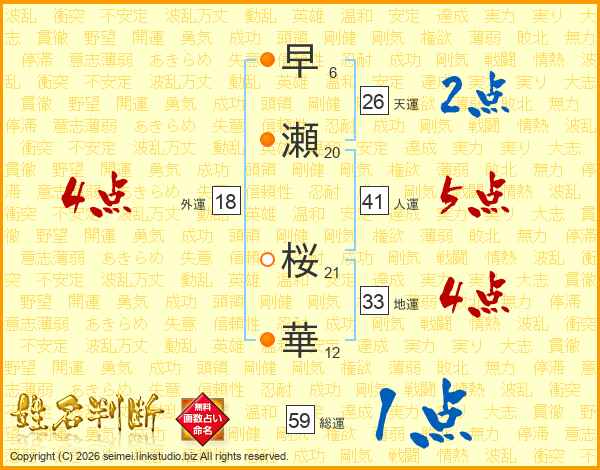 早瀬桜華さんの総運は59画の1点!